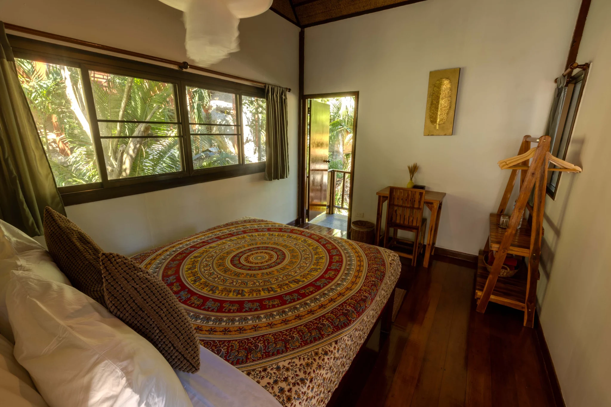 A cozy, traditional bungalow offering an intimate connection to the earth. Mala Bungalow provides a simple yet grounding space, allowing you to fully relax and embrace the serene jungle energy of the resort.